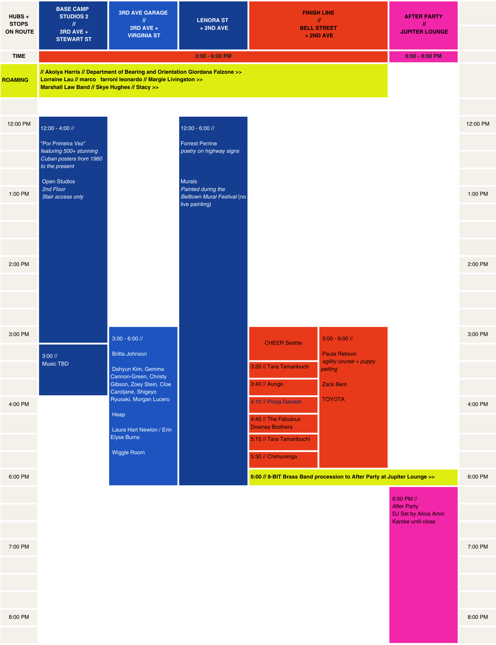 walk dont run is a community art event that activates seattle's urban parks, sidewalks, plazas, and downtown storefronts with music, visual art + live performances along a 3-kilometer route from pioneer square >> downtown seattle >> belltown.